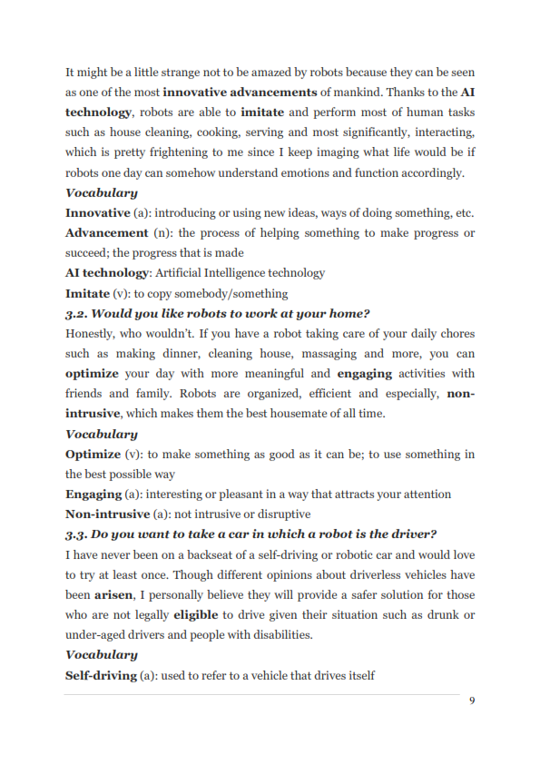 IELTS Speaking Actual Tests & Suggested Answers (Tháng 6–Tháng 8/2017) bao gồm tất cả những gì thí sinh IELTS cần để tự tin đối mặt với giám khảo, với các chiến lược nói hiệu quả, vốn từ vựng nâng cao, ngữ pháp hữu ích, v.v. Ngay cả khi kỹ năng Nói của bạn chưa thật sự hoàn hảo, bạn vẫn có thể nâng điểm IELTS Speaking lên Band 7.0 hoặc cao hơn nhờ sử dụng cuốn ebook này.